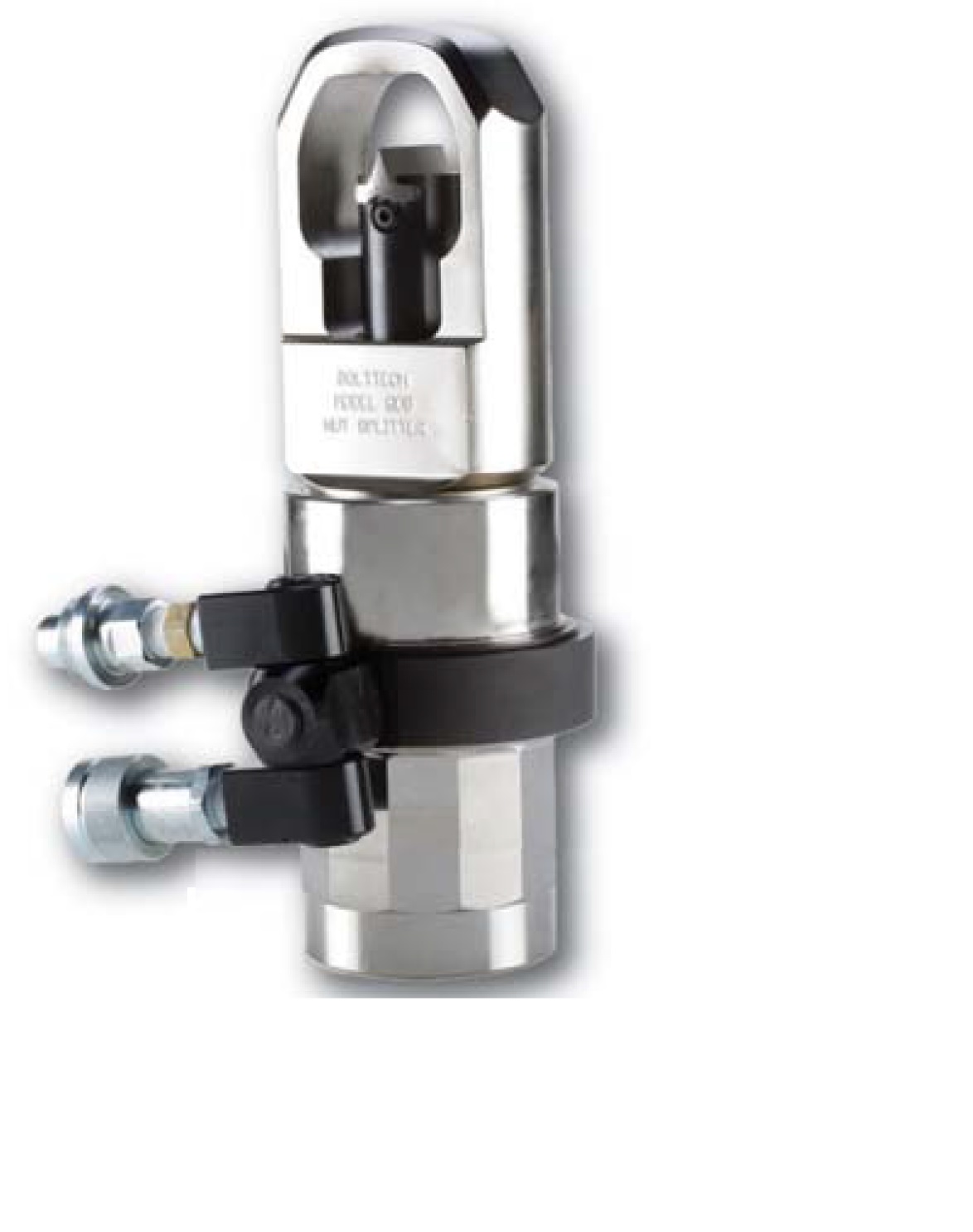 工业生产中广泛使用的螺栓帽(螺母)在露天高温或腐蚀性环境中,有的被锈蚀咬死,有的由于被砸碰而丝扣受损,总之,出现问题,要拆卸螺母是非常困难的,以往的做法通常是利用(气)焊将螺帽和螺栓一齐割掉,然而在一些特殊工况环境中,有时严禁动用火(电)焊操作,如发电厂的煤粉仓、油管道高压高温管路等处,要更换螺母螺栓就更让人束手无策,本厂科研人员经攻关研制成功的专利产品——液压螺母破切器(螺帽破切器,螺帽劈开机)。可以不动火、不用电,不损伤螺栓丝扣,简便、快捷、安全、高效地解决螺栓螺母的拆卸和更换难题